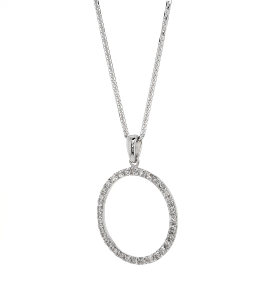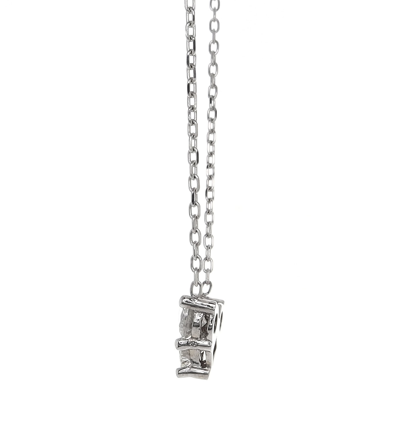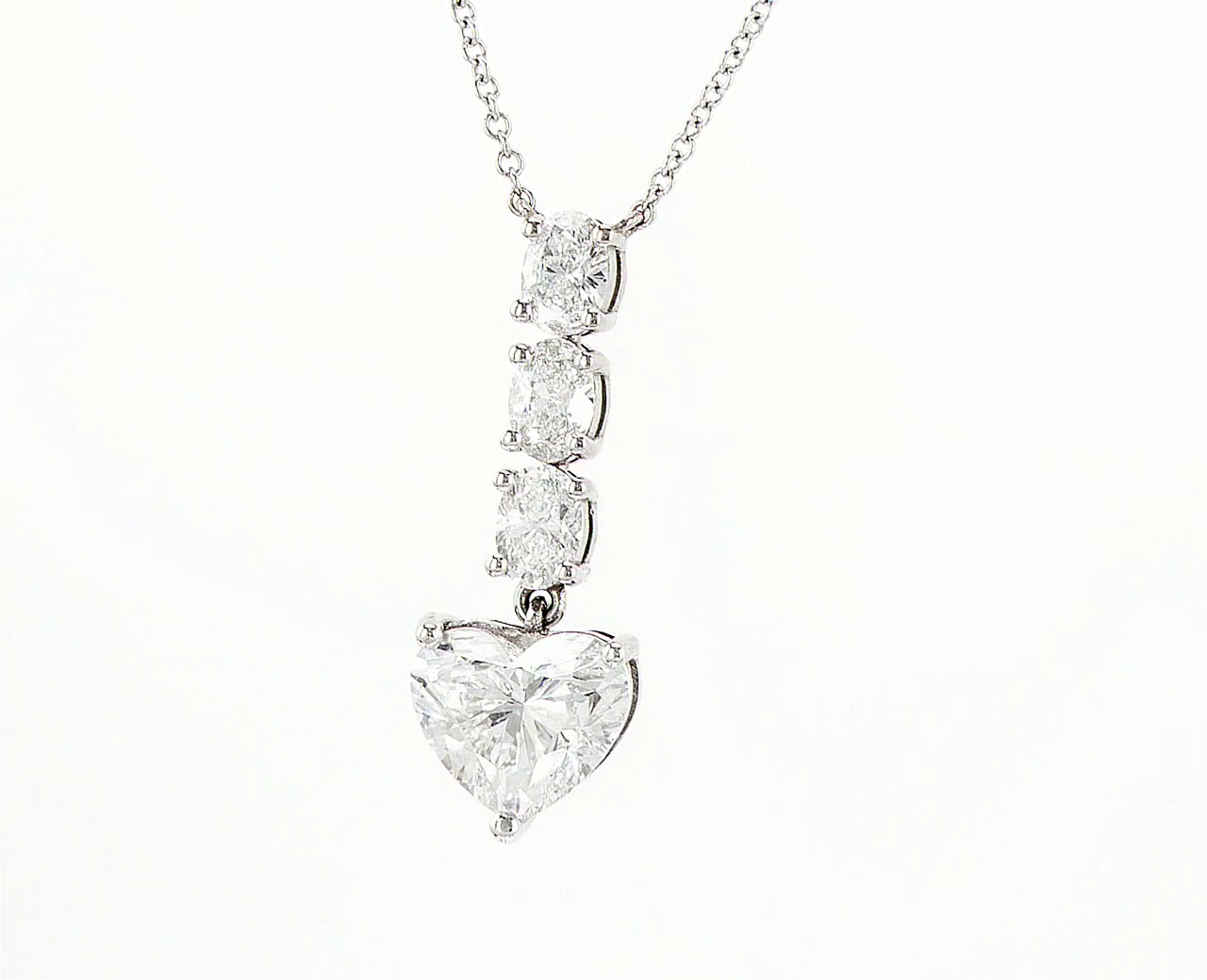 Elegant pendant featuring a heart-shaped diamond with three round diamonds above, set in white gold. A timeless design that radiates brilliance and romance.